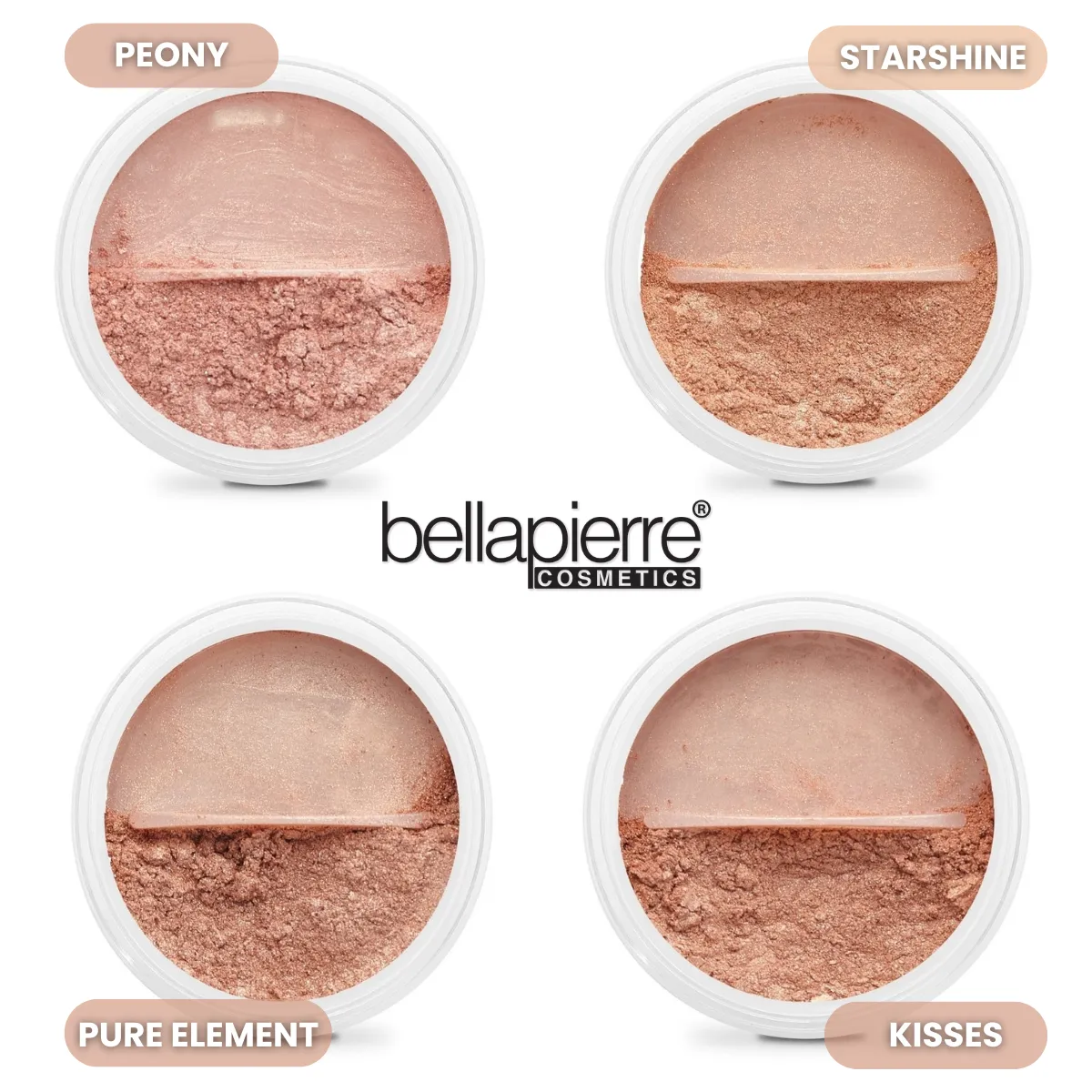 Peony (maro deschis/reflexii roz) 9g, Peony 4g, Starshine (maro/reflexii aurii) 9g, Strarshine 4g, Pure Element (maro cald/reflexii aurii) 9g, Pure Element 4g, Kisses (maro cald neutru) 9g, Kisses 4g